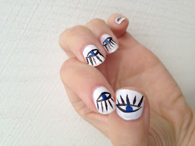 still, i guess i'm somewhat of a goth girl at heart. my "grown up style" is nowhere near my 15 y/o theatrics, but i always go for black, chains and spikes instead of pastels, neon, florals... now i'll do something like this. black half-moons and finger armor (rings, from h&m, $7.95 for 3) to honor my gothic heritage...